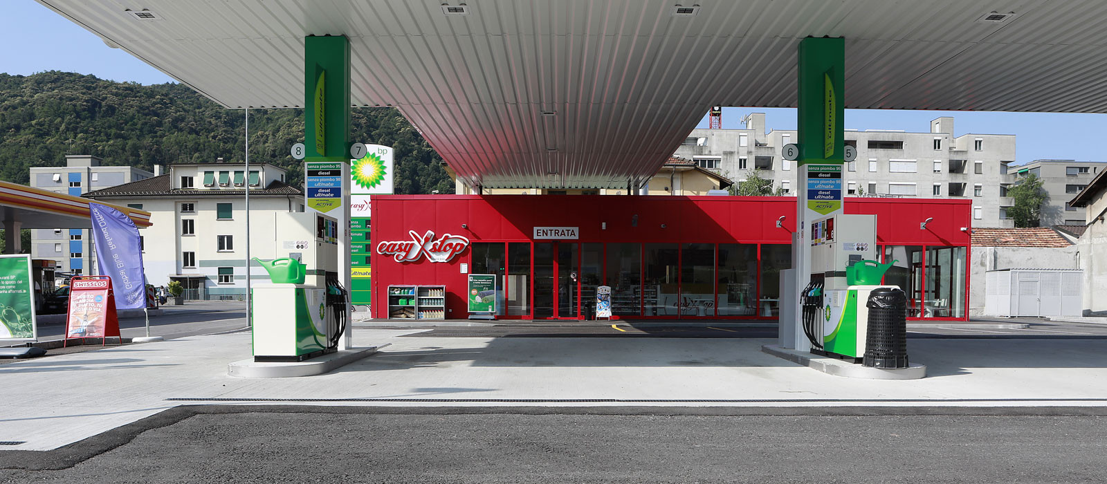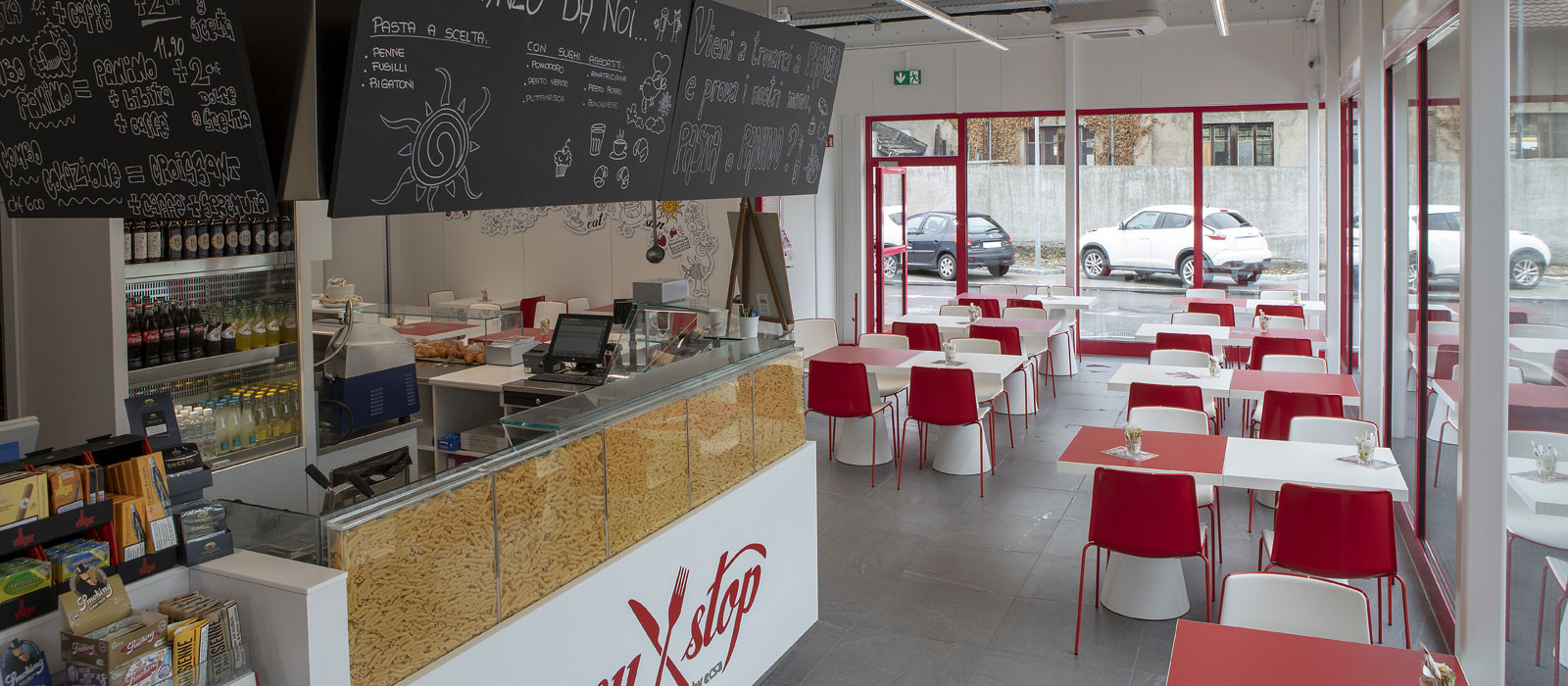 Easy Stop Comacini, situated just a stone’s throw away from the customs at Chiasso, is not only a service station, but also a snack bar where you can stop for a power breakfast, an appetising lunch break or to unwind with rich and tasty dinnertime drinks and snacks.