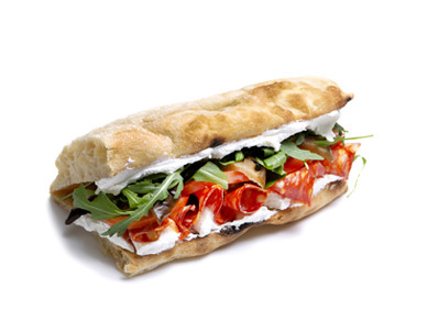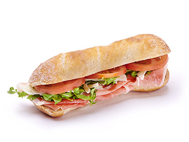 San Pietro raw ham (seasoned for 16 months), flakes of Grana cheese, arugula, tomato, mayonnaise